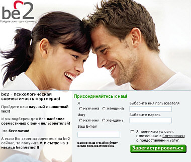Be2, einer der drei größeren Online-Partnervermittler aus dem deutschsprachigen Raum, ist nach einer Pressemitteilung ins Russland-Geschäft eingestiegen. Man wirbt auch dort mit der „ausgefeilten Software“ und dem „wissenschaftlichen Persönlichkeitstest“ des Unternehmens.