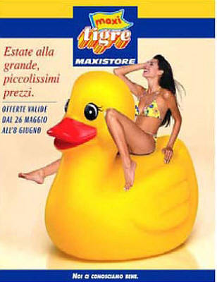 Enten sind wirklich niedlich, nicht wahr? Vor allem kann man sie ganz ausgezeichnet und lustvoll reiten, wie die Werbung für Maxi Tigre uns unzweifelhaft darstellen will. Die Ente unten hingegen kann (schon wegen der Größe) nicht geritten werden – aber sie hat ein Geheimnis in Bürzel und Schnabel, das ebenfalls dem Lustgewinn dient.
