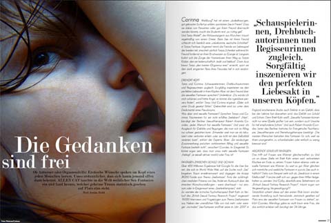 Könnte es solche Magazine auch für Frauen geben? Das Blog von be2 fand jüngst vor allem „Alley Cat“ und „Secrets“ – zwei Magazine, die sich unmittelbar an junge, freche und gebildete Frauen wenden, die erotisch noch wirklich neugierig sind.