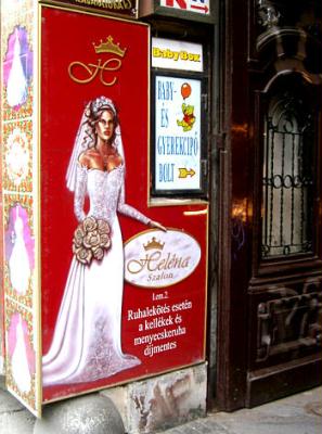 Brautkleider sollte man meiden – sie sind am Tag danach nicht einmal mehr den Stoffpreis wert. Also: Weg mit diesem Blödsinn – wenn schon, dann sollte man sich solch ein Kleid leihen – hier in Budapest ist dies sowieso die übliche Methode, mit dem Brautkleid umzugehen.