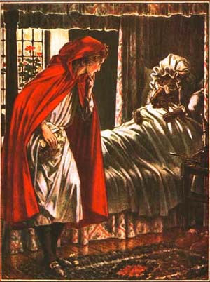 Rotkäppchen gilt allgemein als Warnmärchen: Man spricht nicht mit Fremden und verrät ihnen nicht die eigenen Wege. Tut man es dennoch, frisst einen der böse Wolf, es sei denn, die Herren Grimm hätten das Märchen frisiert: Dann kommt der junge Jägersmann und macht alles wieder gut.