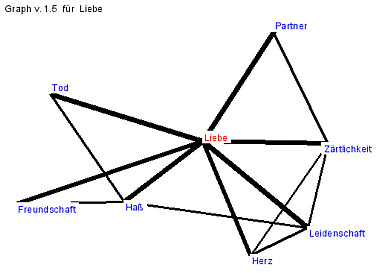 Hier habe ich einmal einen Tipp ganz anderer Art: Wann immer Sie Informationen über ein deutsches Wort suchen, hilft Ihnen die Universität Leipzig – Online, versteht sich. Hier die aktuellste Grafik zu Liebe, © 2007 by Uni Leipzig, Leipzig, Germany.